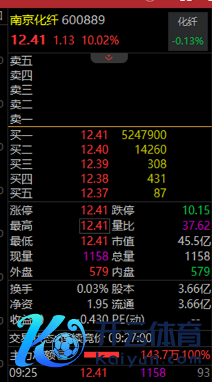 此前相接5个一字涨停的南京化纤早盘络续强势,以12.41元/股涨停价开盘。赶走上昼收盘,该股依然保持一字涨停态势,封单跳动130万手。
