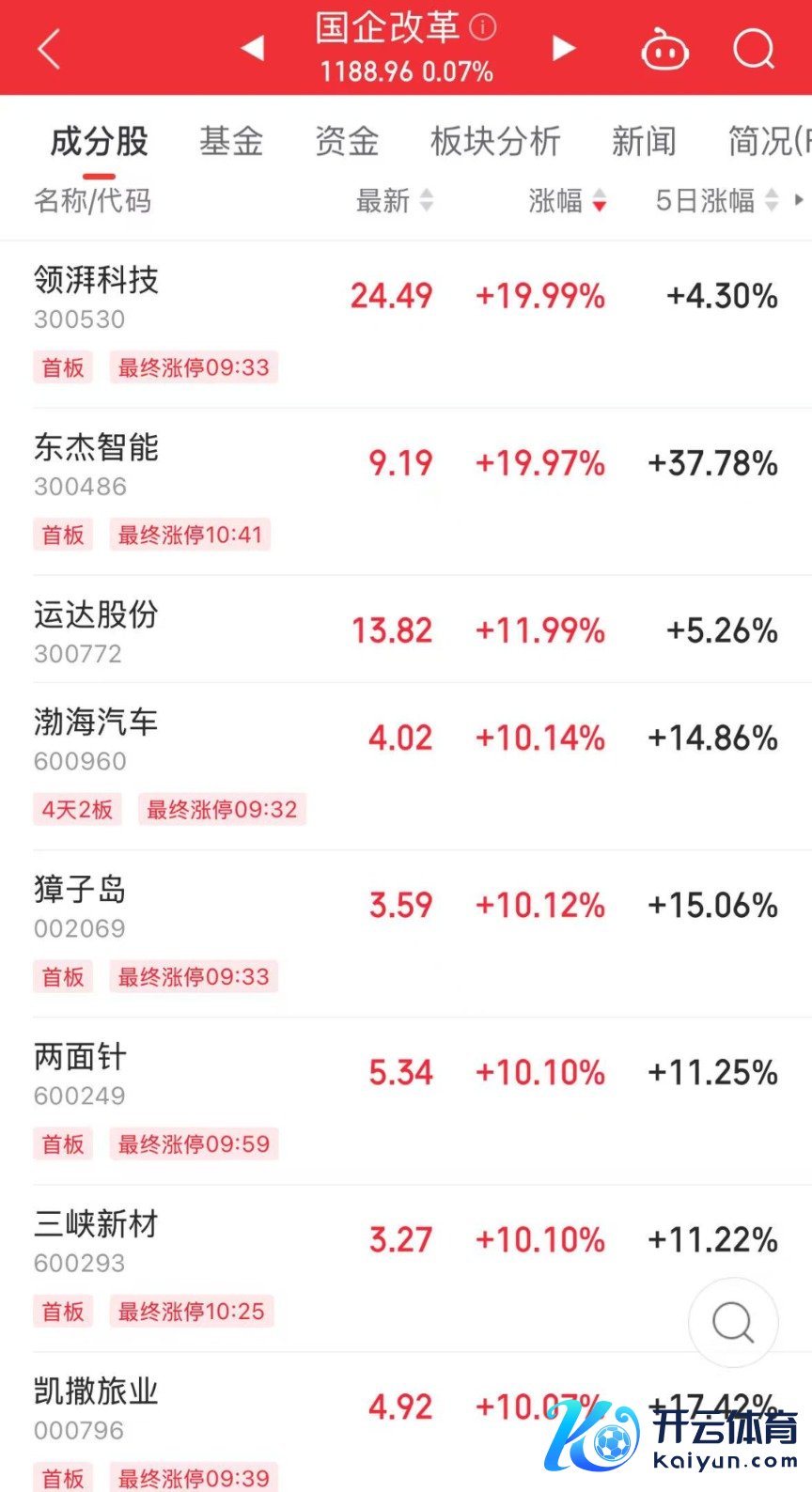 早盘国企股票掀翻涨停潮。渤海汽车、獐子岛、两面针、三峡新材、凯撒旅业、格力地产、山高环能、南京商旅、南京熊猫、湘潭电化、宁夏建材等浩荡个股涨停。
