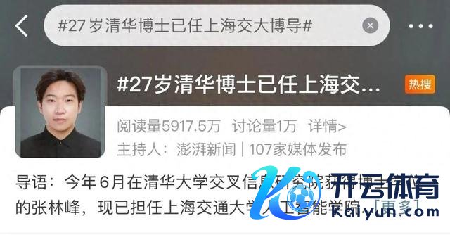 最近开云(中国)Kaiyun·体育官方网站-登录入口,“27岁清华博士任上海交大博导”登上了微博热搜,引起了许多网友的和蔼他是谁?为什么这样年青就能作念博导?