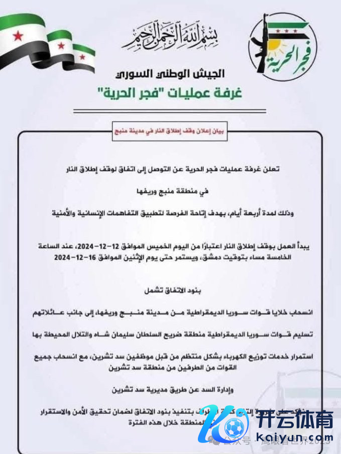 HTS头目给库尔德东谈主发出了公开信,声称库尔德东谈主是叙利亚的一部分,朱拉尼和新一届政府将养精蓄锐将阿夫林和土耳其队列遏抑下的北部其他地区了债给库尔德东谈主民。