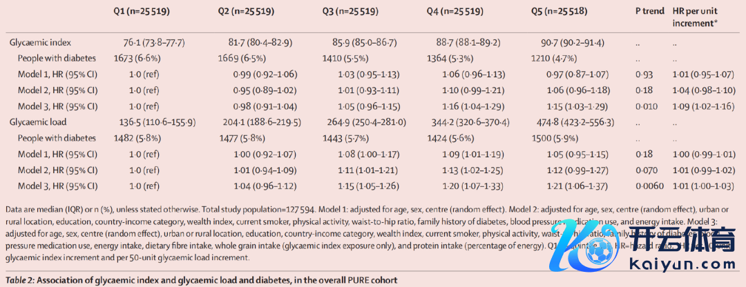 对东谈主口统计学、生活面孔、健康史和饮食身分进行了多变量周折后发现,较高的GI值与2型糖尿病的发病率有着显耀关联。